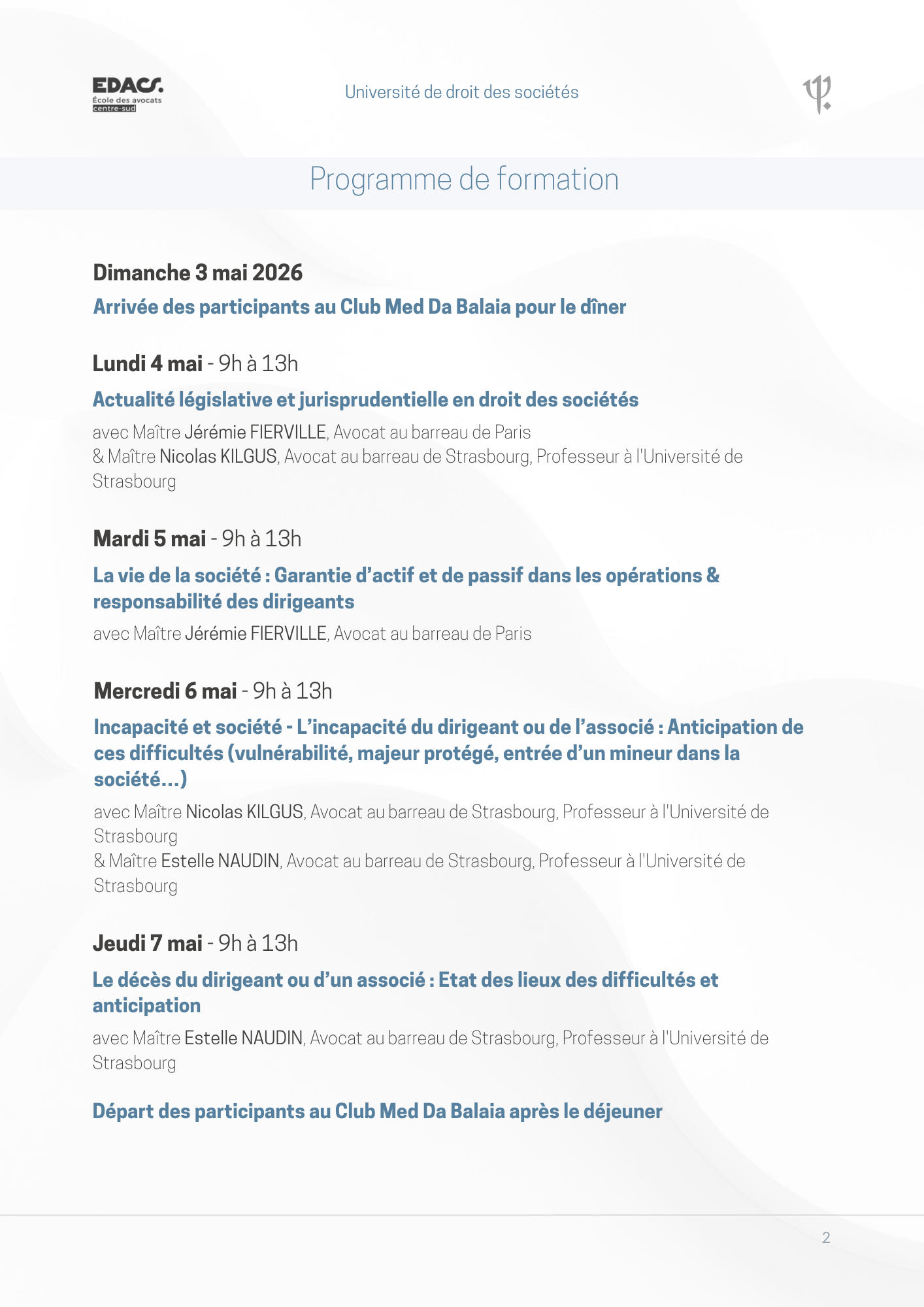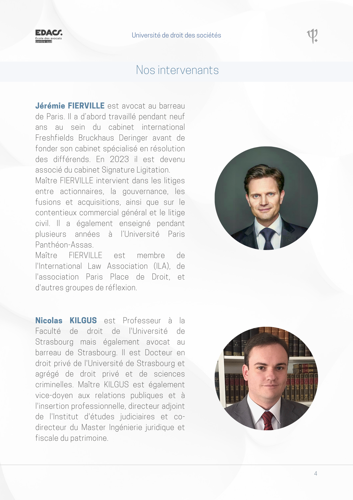 Si vous souhaitez participer à l'université de droit des sociétés