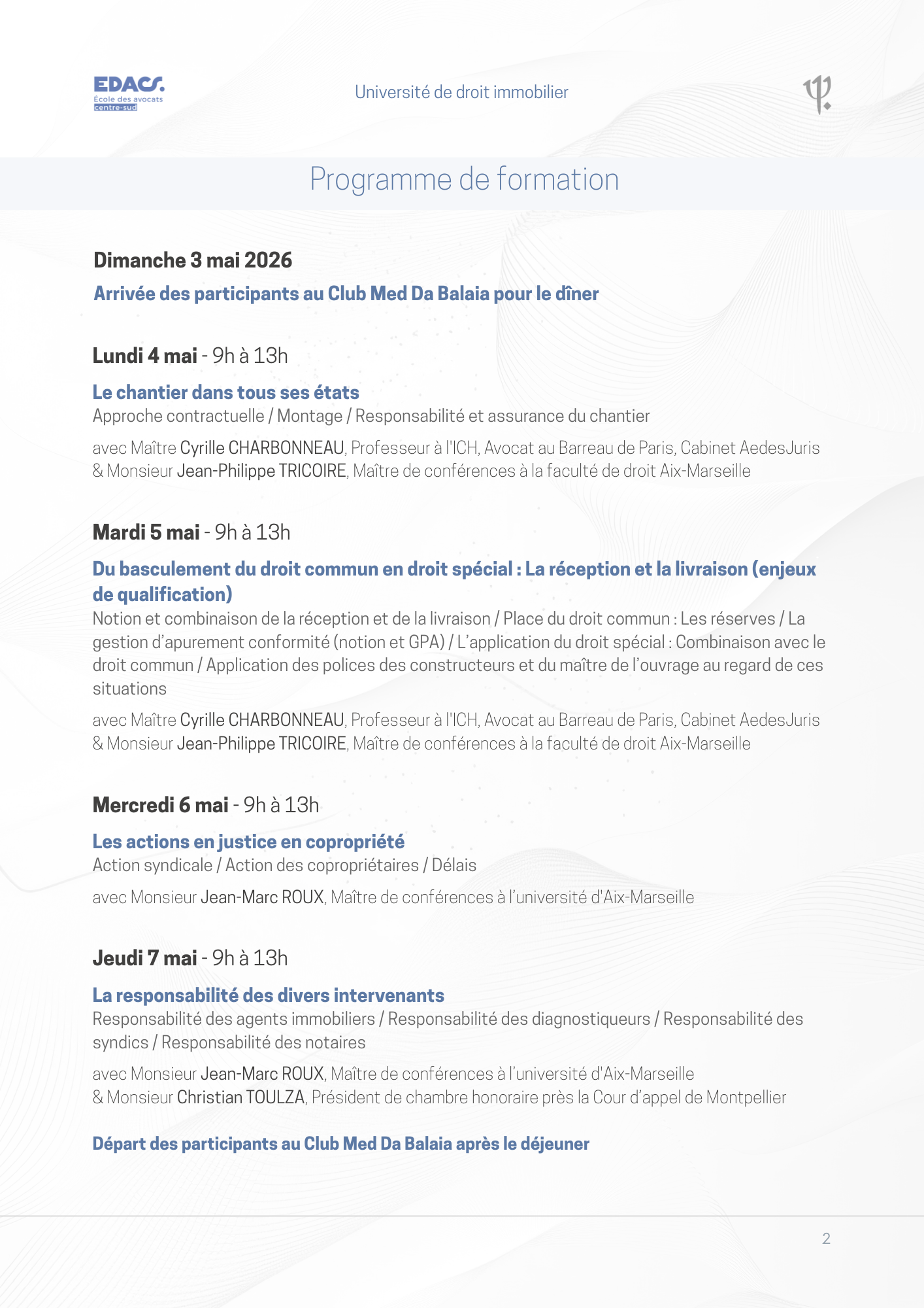 Si vous souhaitez participer à l'université de droit immobilier